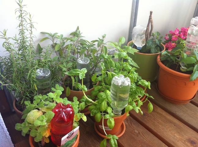 Інший варіант — використовувати пластикову пляшку. У кришці роблять крихітні отвори, наливають воду, закручують і вставляють пляшку догори дном у землю. Такий спосіб забезпечує повільне зволоження.